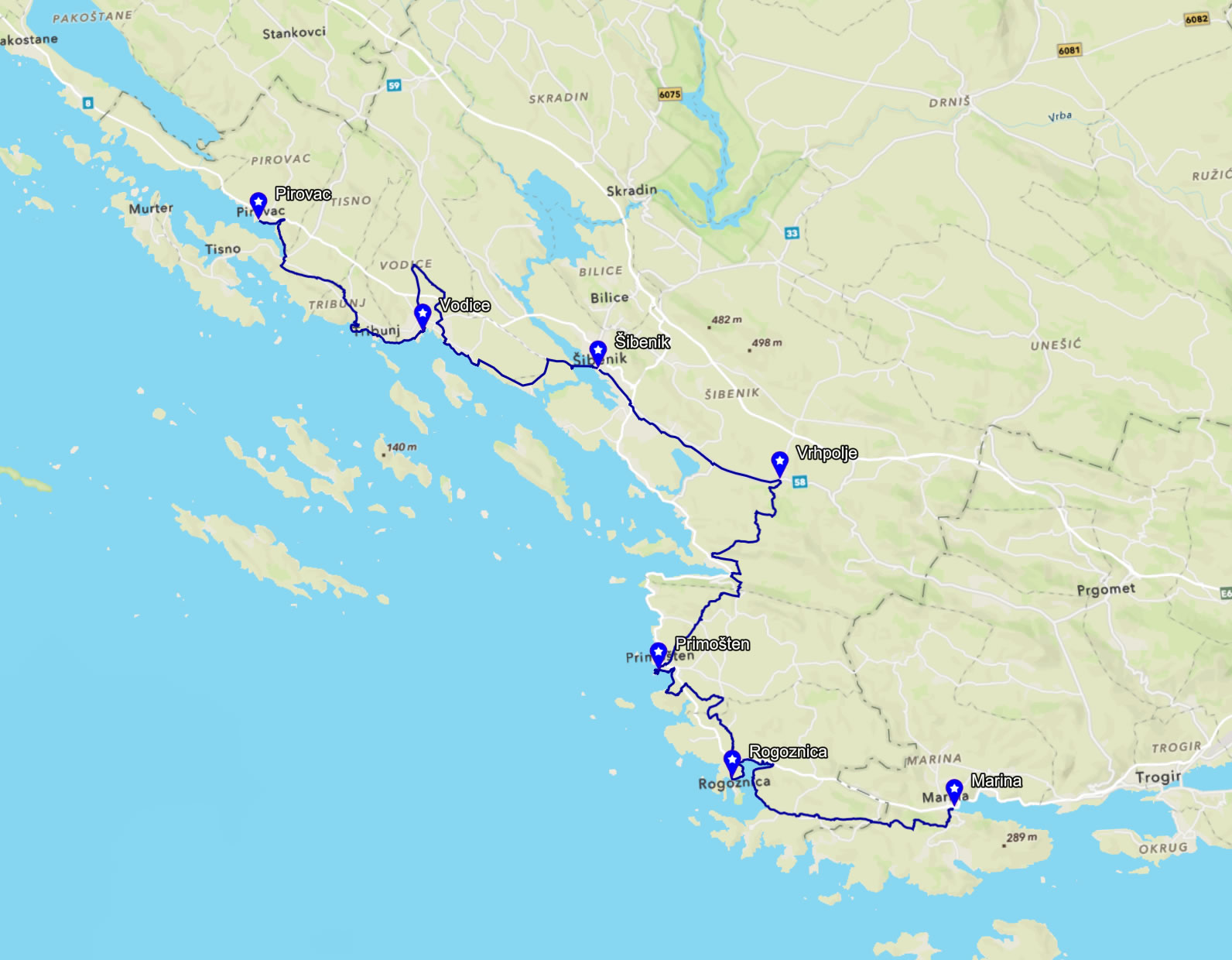 Le voyage commence à Marina et vous conduit vers Rogoznica, un charmant village de pêcheurs connu pour sa mer cristalline et l’œil mystique du dragon. Le deuxième jour, vous continuez vers Primošten, célèbre pour ses vignobles caractéristiques, qui sont reconnus comme un exemple exceptionnel de viticulture traditionnelle dalmate. Le troisième jour apporte un changement de paysage à mesure que vous montez vers Vrpolje, où se trouve un célèbre sanctuaire marianique. Le quatrième jour, vous arrivez à Šibenik, une ville historique protégée par l’UNESCO, pleine de monuments culturels tels que la cathédrale Saint-Jacques.